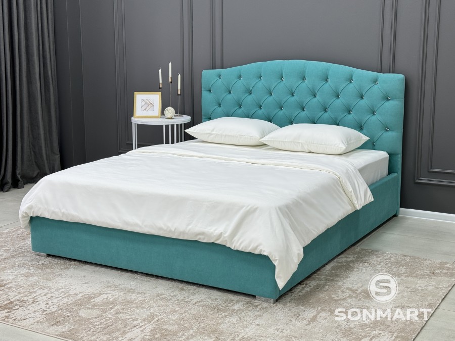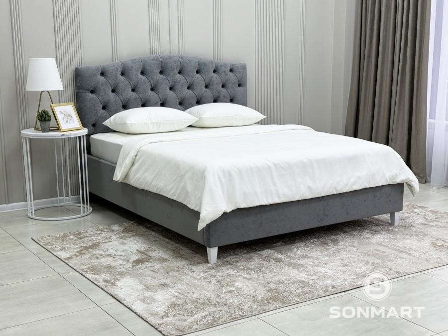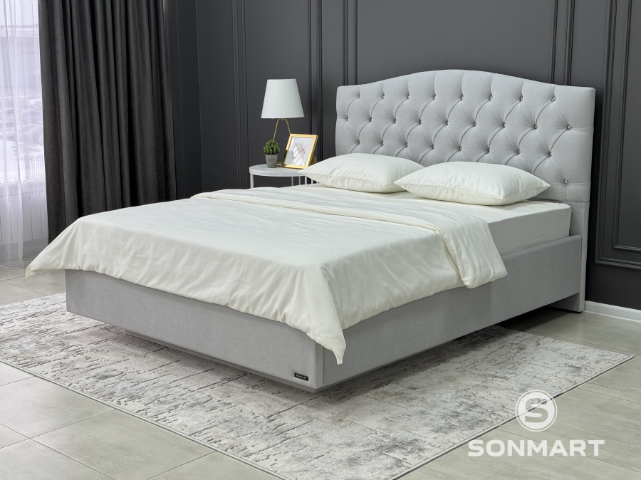 По индивидуальному запросу можно изменить высоту изголовья, поставить высокие деревянные ножки или изменить ткань обивки кровати.