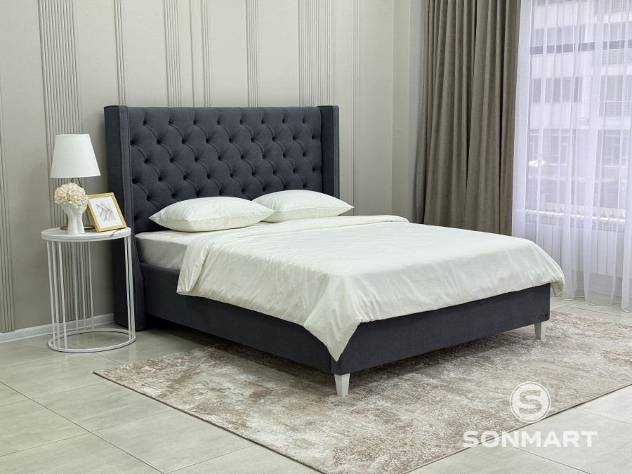 Каркас кровати выполнен из высококачественного ЛДСП, что гарантирует долговечность и прочность конструкции. В базовой комплектации предусмотрены хромированные ножки высотой 3,5 см: