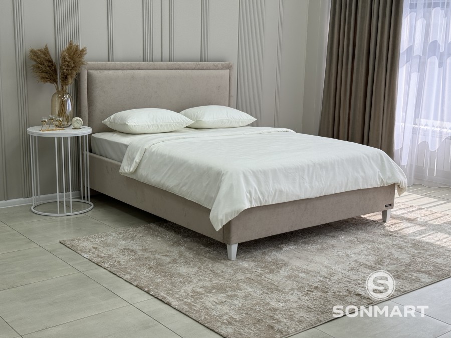 Каркас кровати выполнен из высококачественного ЛДСП, что гарантирует долговечность и прочность конструкции. В базовой комплектации предусмотрены хромированные ножки высотой 3,5 см: